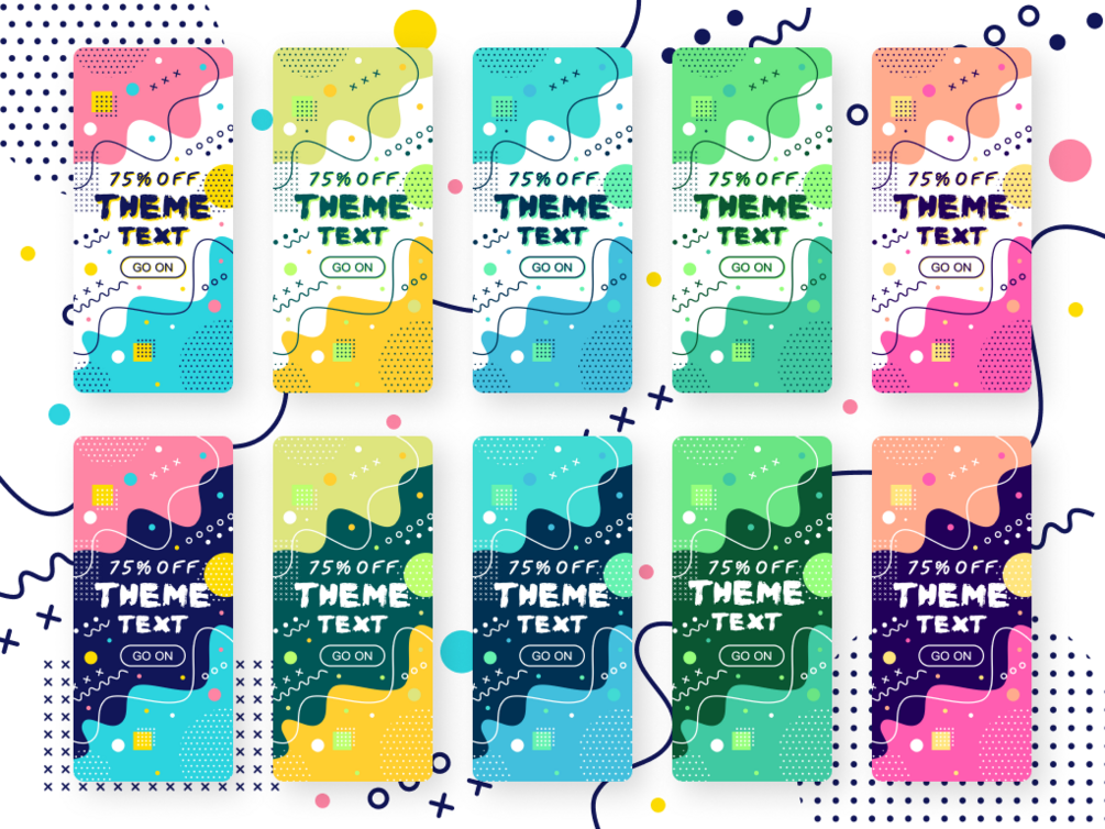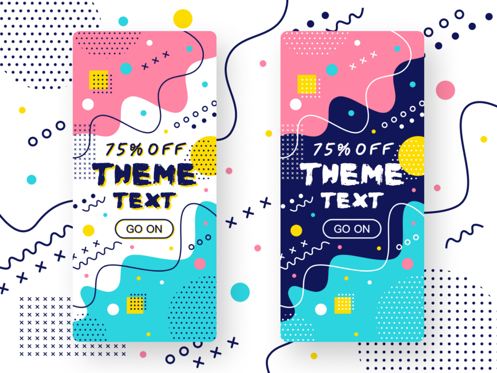 - AE source files, including 6 dimensions of banner ads and 10 color schemes (5 bright versions and 5 dark versions), with colors and text that can be freely modified.
